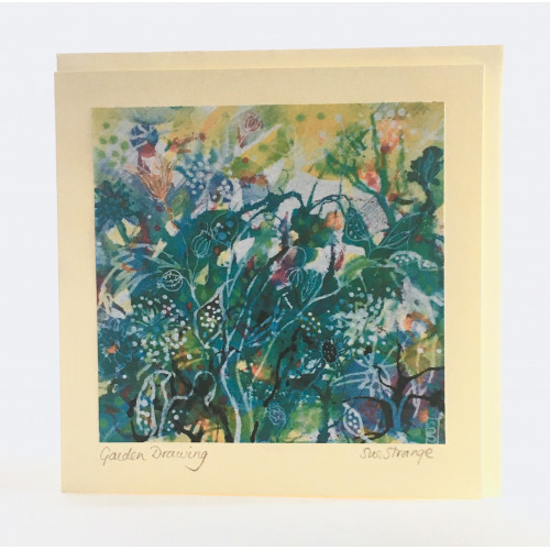 GREETINGS CARD featuring print of my Garden Drawing (pack of 4). Quality cream card with envelope, blank inside for your message.